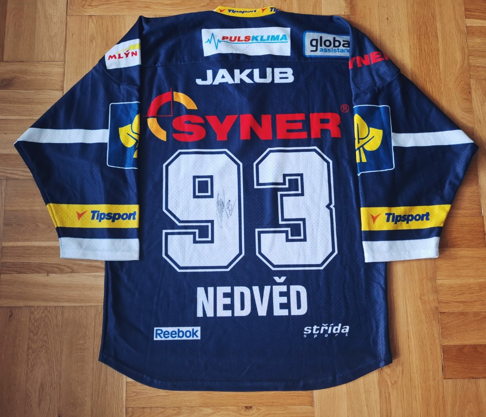 Replika dresu Bílých Tygrů Liberec podepsaný kapitánem Petrem Nedvědem. Dres je nový, nenošený.
